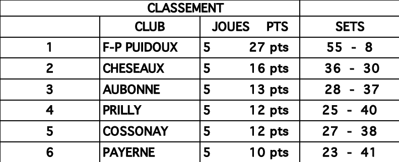 | 6 Août 2024 – dès 17h00 | A-F Puidoux – TC Cheseaux | 6-0 | 12-1 |